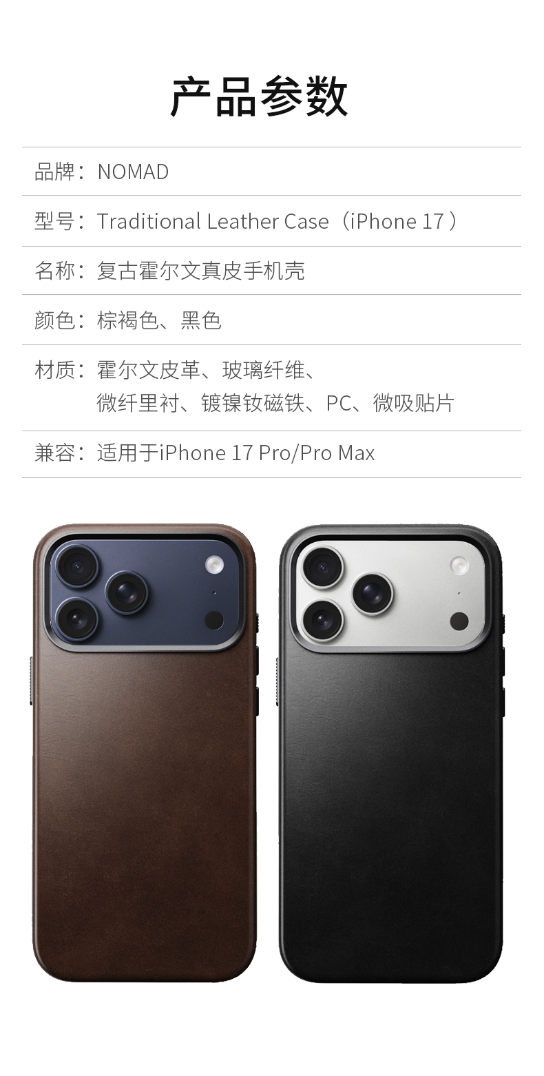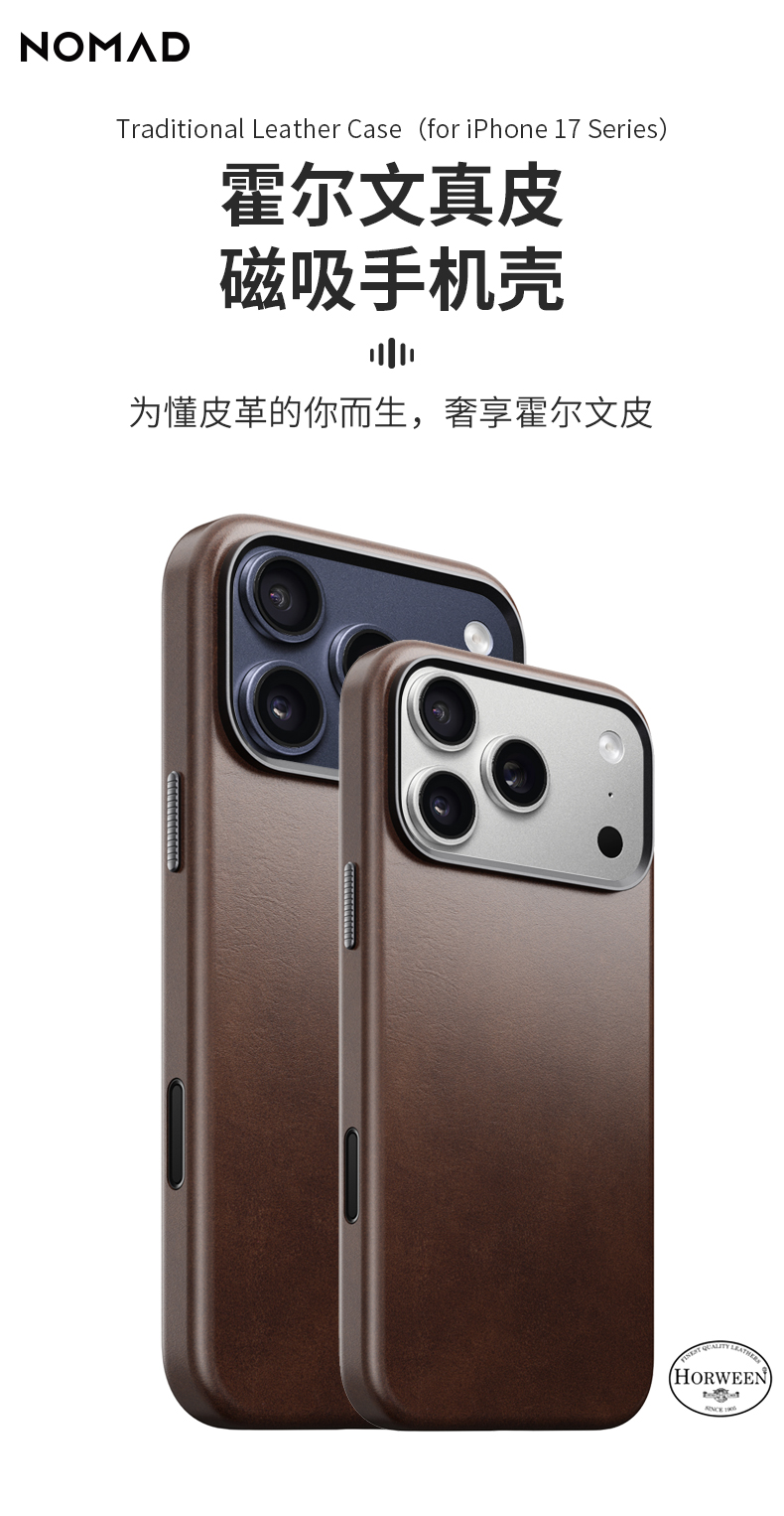 美国NOMAD丨霍尔文真皮全包手机壳适用新款苹果iphone17promax手机壳iPhone17磁吸高级原生级相机按键保护壳
