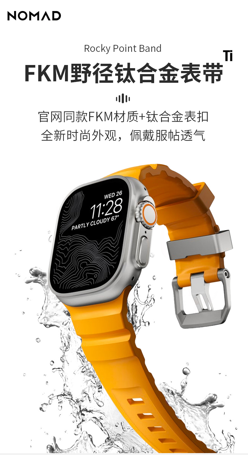 美国NOMAD适用iwatch苹果手表表带applewatch9Ultra2运动苹果手表s10表带Ultra3新品钛合金氟橡胶硅胶49/45mm
