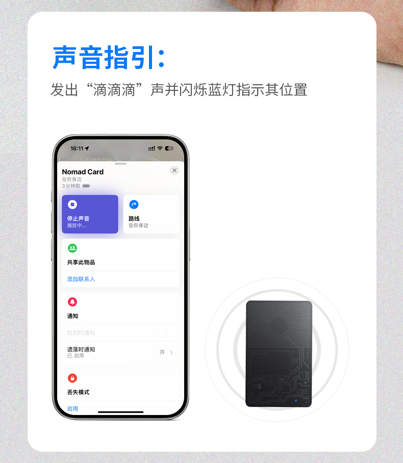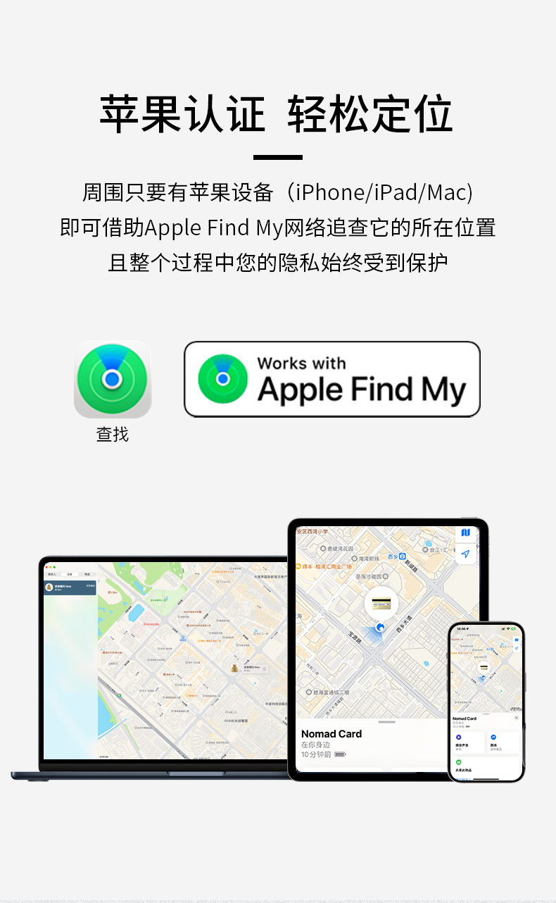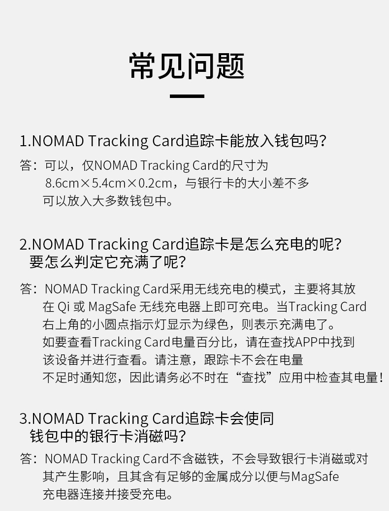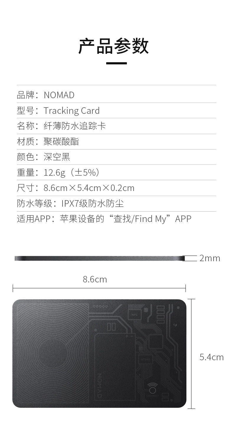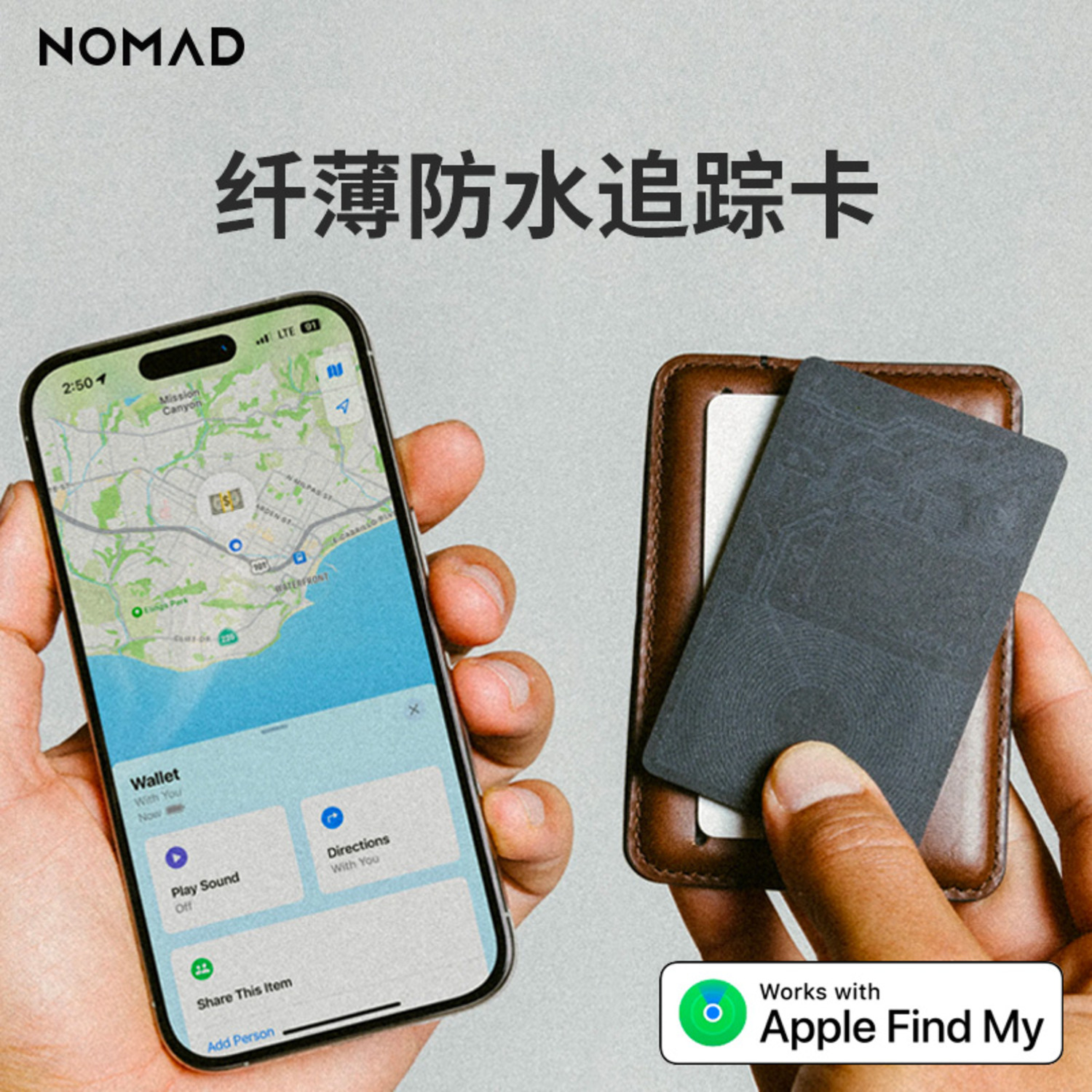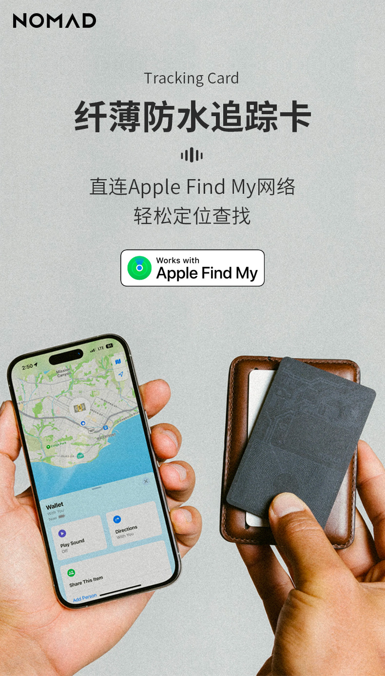美国NOMAD丨Tracking Card适用于苹果认证防丢器钱包卡片超薄定位器卡包防丢失追踪器充电便携汽车辆防丢神器