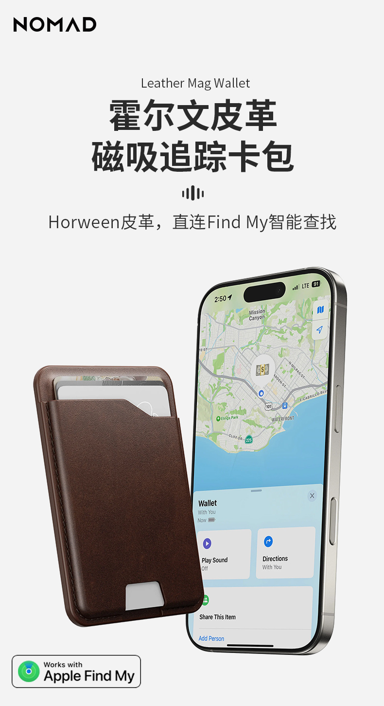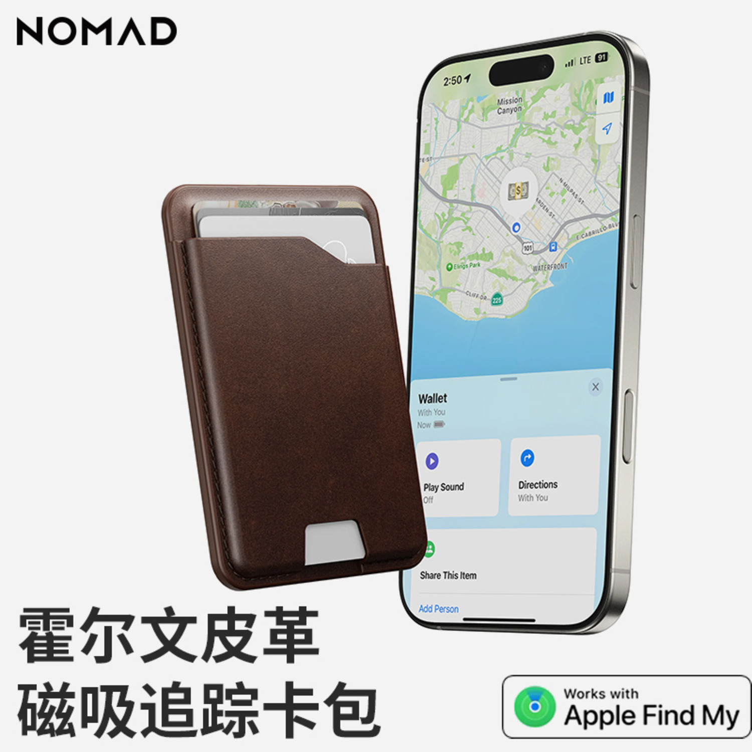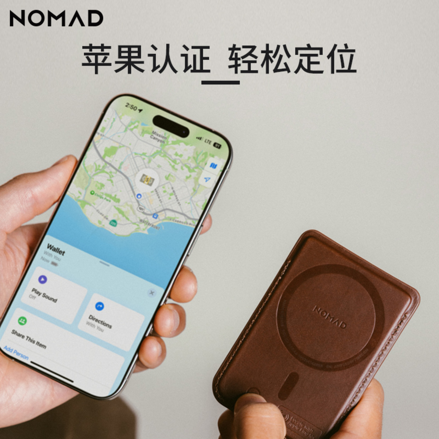 美国NOMAD丨霍尔文真皮MagSafe卡包苹果FindMy认证防丢磁吸卡套适用于iPhone15/16/ProMax超薄磁吸商务皮卡包